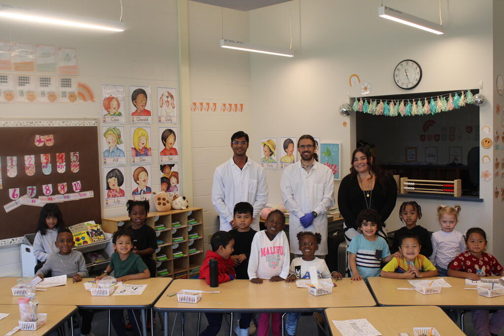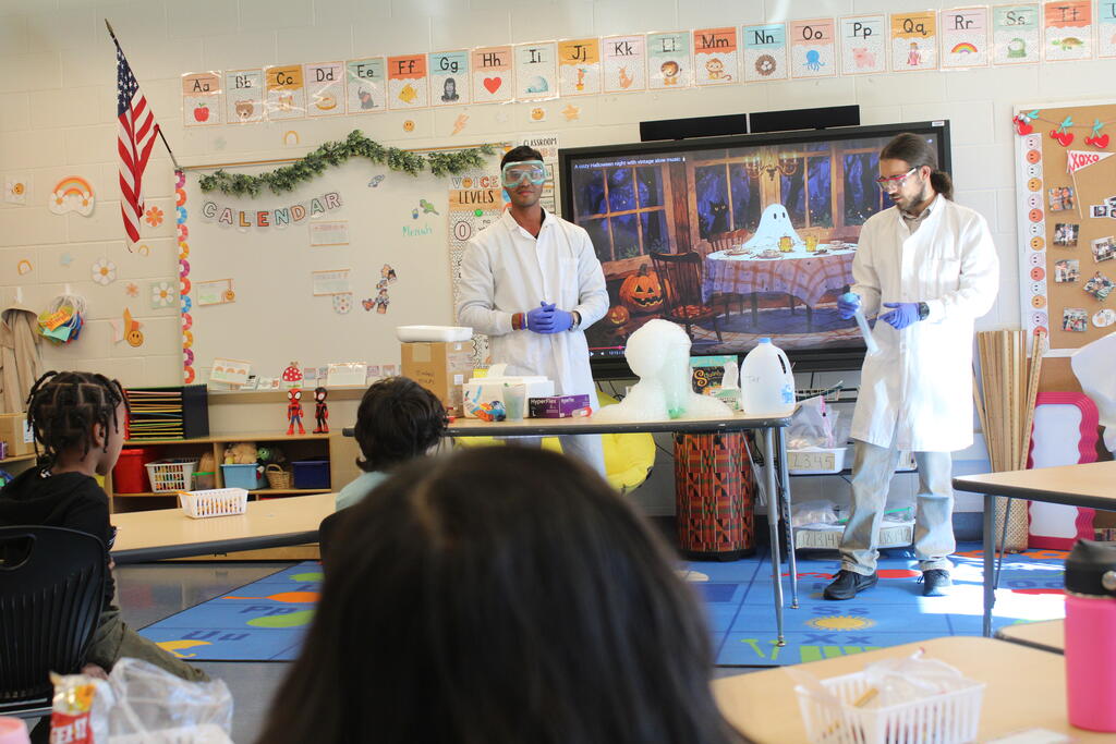 Scientists from Masonic Medical Research Institute came to a Watson Williams kindergarten classroom to celebrate National Chemistry week. This is the 4th year the MMRI staff have come to visit  Miss.Mancuso's classroom at Watson Williams. Miss.Mancuso states "This is always a great experience to not only celebrate the sciences, but also to kick-off career exploration at a young age."